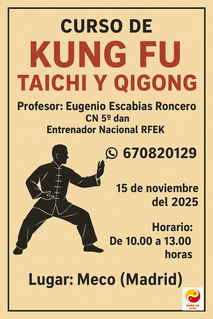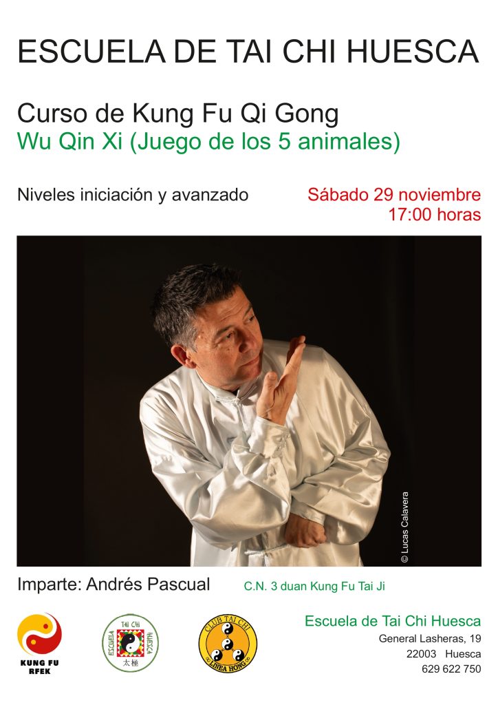 El sábado 29 de noviembre la Escuela de Taichi Huesca organiza un Curso de Kung Fu Chi Kung que será impartida por Andrés Pascual Rincón y que versará sobre Wu Qin Xi (Juego de los cinco animales). ¡No te pierdas esta oportunidad! ¡Te esperamos! Más info en el cartel.