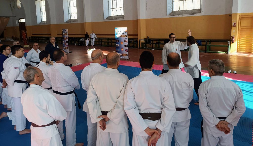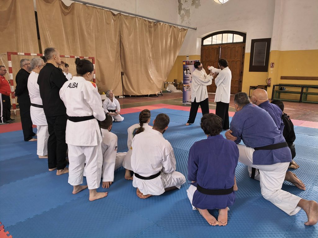 El curso, con más de 80 practicantes y coordinado por UGFAS, fue impartido por maestros de distintas disciplinas: José Luis Prieto (Goshin), Vicente Antequera (Nihon Tai Jitsu), Francisca Moreno (Autodefensa CC para la Mujer), José Robles (Combate Cuerpo a Cuerpo) y nuestro Director Nacional, Miguel Ángel Rojo.