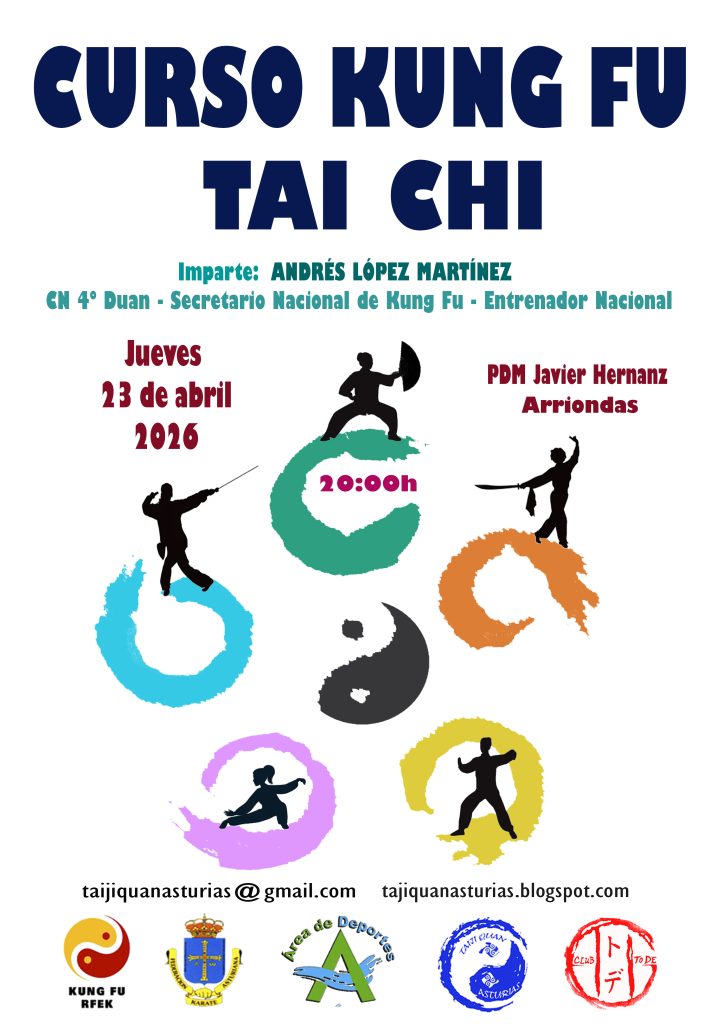 El próximo 23 de abril el Secretario Nacional de Kung Fu, Andrés López, impartirá un Curso de Kung Fu Taiji Quan en el Polideportivo Javier Hernanz de Arriondas (Asturias) en colaboración con FAKYDA, el Ayuntamiento de Parres y el apoyo de los clubes locales: Tode y Taiji Quan Asturias.