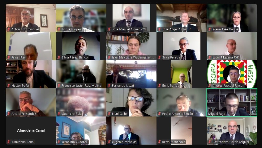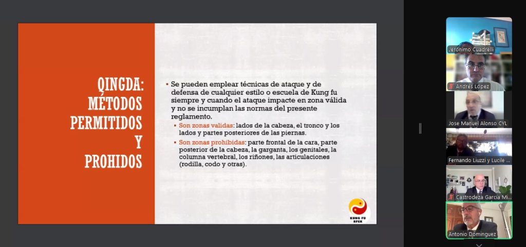 El sábado 18 de octubre el Departamento Nacional de Kung Fu convocó la sesión teórica del Curso Nacional de Arbitraje de forma telemática. En la sesión teórica, impartida por la Dirección de Arbitraje, con Antonio José Domínguez al frente y asistido por José Manuel Alonso, se presentó y aclaró diversos aspectos de la nueva normativa de competición de formas y combate de cara al inminente Campeonato de España de Kung Fu en Guadalajara el 22 de noviembre.